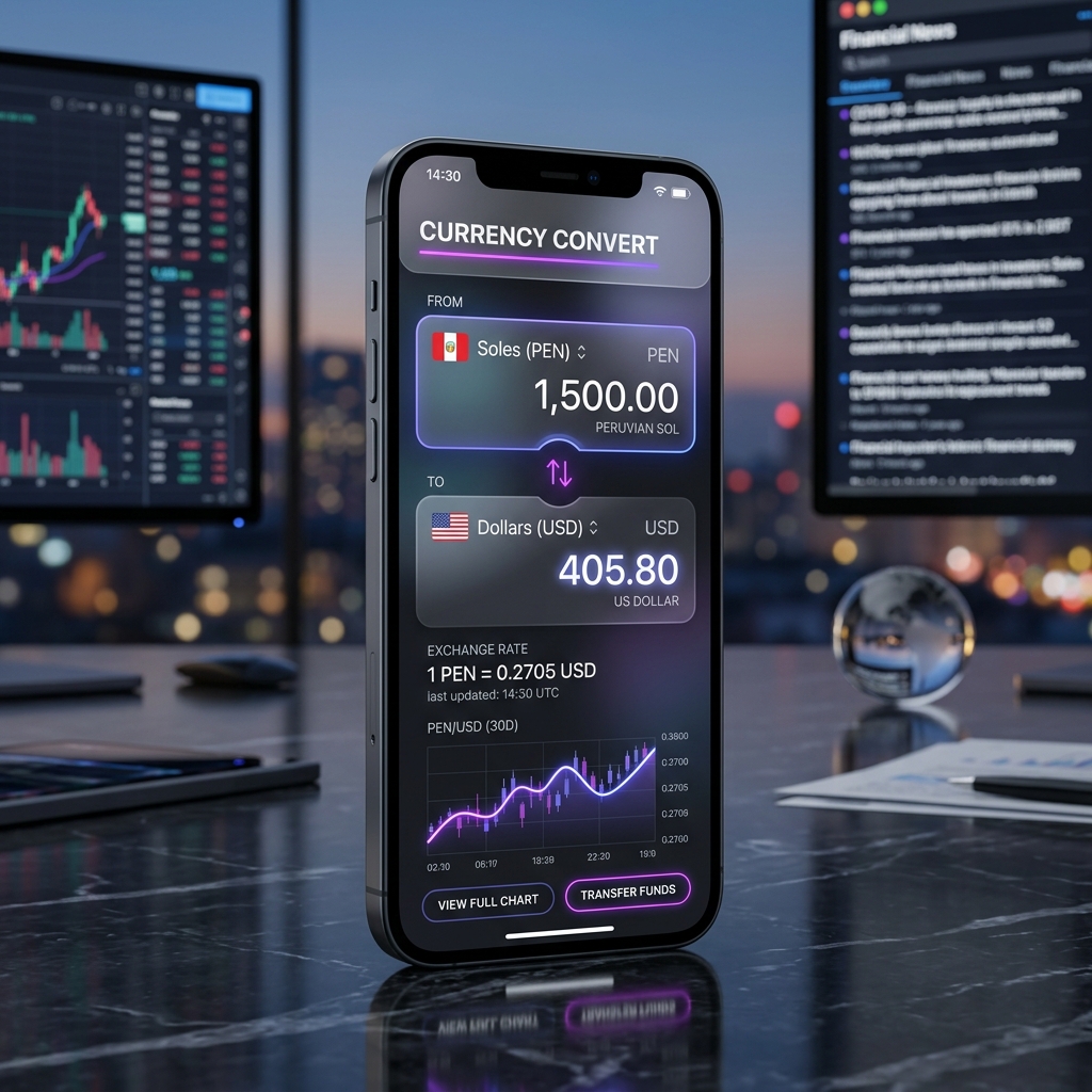 Nuestra plataforma se conecta con APIs financieras para obtener el tipo de cambio del día (Soles/Dólares). Puedes registrar una transacción en $ y ver cómo afecta tu patrimonio total en S/ automáticamente.